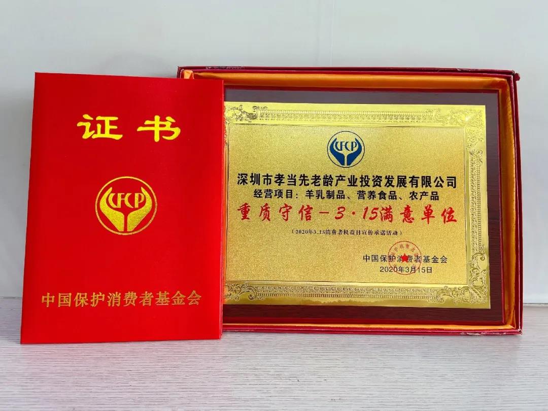 喜訊!熱烈祝賀孝當先集團榮獲“重質(zhì)守信—3?15滿意單位”稱號