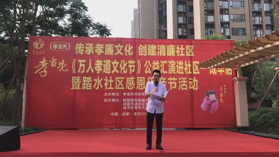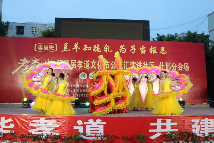 五月,歡慶著勞動(dòng)者的汗水,紀(jì)念著青春沸騰的歷史,回味著溫馨淳淳的母愛,孝當(dāng)先第四屆《萬人孝道文化節(jié)》公益匯演進(jìn)社區(qū)活動(dòng)在粵、蜀、贛、湘等地隆重拉開帷幕,截至2018年5月18日,已成功舉辦了十三場,演出節(jié)目200多個(gè),參加團(tuán)隊(duì)1000多個(gè),各地主流媒體針對(duì)活動(dòng)盛況及孝道文化傳播感人場面爭相報(bào)道,直接或間接受益人群達(dá)千萬以上。孝道文化節(jié)伴隨著優(yōu)美的舞蹈,悅耳的歌聲在每一個(gè)活動(dòng)社區(qū)激情演唱,中華民族優(yōu)秀的孝道文化,在孝當(dāng)先人的帶領(lǐng)下又一次在中華大地上傳播回響。