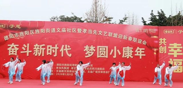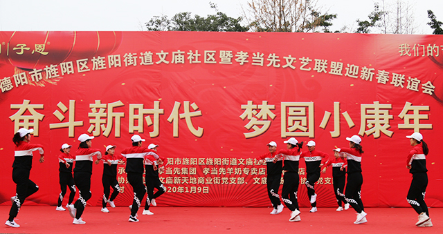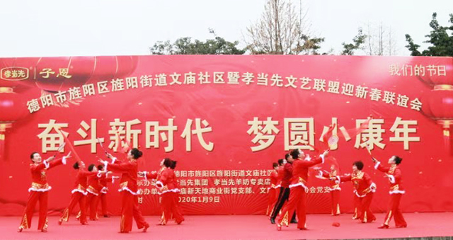 1月9日,由德陽(yáng)市旌陽(yáng)區(qū)旌陽(yáng)街道文廟社區(qū)主辦、孝當(dāng)先羊奶專(zhuān)賣(mài)店四川德陽(yáng)店、文廟新天地商業(yè)街道黨支部、文廟廣場(chǎng)文體協(xié)會(huì)黨支部承辦的“德陽(yáng)市旌陽(yáng)區(qū)旌陽(yáng)街道文廟社區(qū)暨孝當(dāng)先文藝聯(lián)盟迎新春聯(lián)誼會(huì)” 在德陽(yáng)市文廟廣場(chǎng)舉辦,吸引了1000多名觀(guān)眾觀(guān)看。