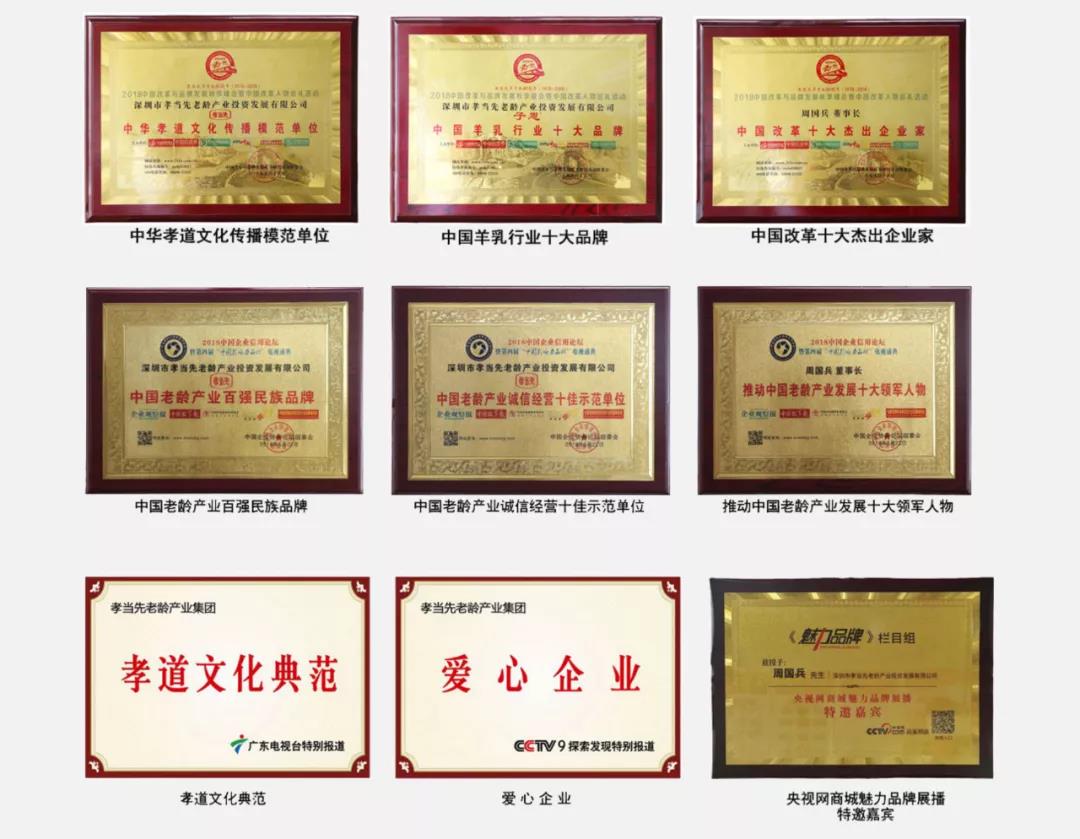 孝當(dāng)先集團(tuán)堅(jiān)信誠(chéng)信和孝道都是中華民族優(yōu)秀傳統(tǒng)文化,自2015年成立迄今,作為領(lǐng)域創(chuàng)新實(shí)踐者,因先進(jìn)產(chǎn)業(yè)理念及溫度品牌文化飛速崛起并覆蓋全國(guó)。圍繞“老齡公益、社區(qū)養(yǎng)老、孝道商學(xué)院、老年旅游、養(yǎng)老地產(chǎn)、養(yǎng)老基金、互聯(lián)網(wǎng)”七大板塊,立志助力中國(guó)智慧養(yǎng)老產(chǎn)業(yè)全價(jià)值鏈發(fā)展平臺(tái)大力發(fā)展為主旨,孝當(dāng)先集團(tuán)早于2017 – 2018年,便已先后榮獲 “中國(guó)老齡產(chǎn)業(yè)百?gòu)?qiáng)民族品牌”“中國(guó)老齡產(chǎn)業(yè)誠(chéng)信經(jīng)營(yíng)十佳示范單位”“中國(guó)羊乳行業(yè)十大品牌”“中華孝道文化傳播模范單位” “CCTV央視魅力品牌”等榮譽(yù)。