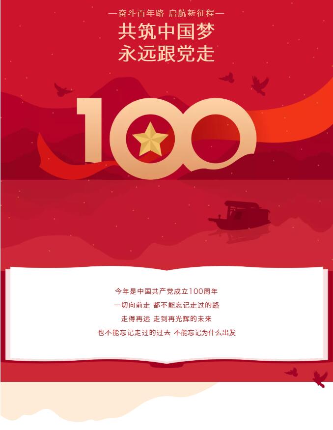 100年的風(fēng)雨歷程,100年的輝煌歷史,100年的開(kāi)拓進(jìn)取。偉大的中國(guó)共產(chǎn)黨高舉指路的明燈,為我們指引前進(jìn)的方向。永遠(yuǎn)跟黨走,實(shí)現(xiàn)我們的抱負(fù)和遠(yuǎn)大的理想。永遠(yuǎn)跟黨走,擔(dān)當(dāng)未來(lái)的責(zé)任成為民族的脊梁。