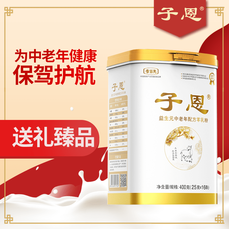 子恩益生元中老年配方羊乳粉營(yíng)養(yǎng)豐富,添加多種營(yíng)養(yǎng)成分,含有豐富而均衡的生羊乳(全脂羊奶粉)、乳清蛋白粉、乳糖、棕櫚油、低聚果糖、低聚異麥牙糖、共軛亞油酸甘油酯、碳酸鈣、硫酸亞鐵、硫酸鋅、維生素A(醋酸視黃酯)、維生素D(膽鈣化醇)、維生素C(L-抗壞血酸)。營(yíng)養(yǎng)全面、口感好、易吸收!