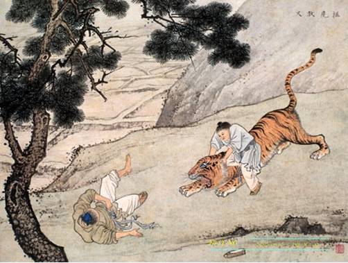 楊香,晉朝人。十四歲時(shí)隨父親到田間割稻,忽然跑來一只猛虎,把父親撲倒叼走,楊香手無寸鐵,為救父親,全然不顧自己的安危,急忙跳上前,用盡全身氣力扼住猛虎的咽喉。猛虎終于放下父親跑掉了
